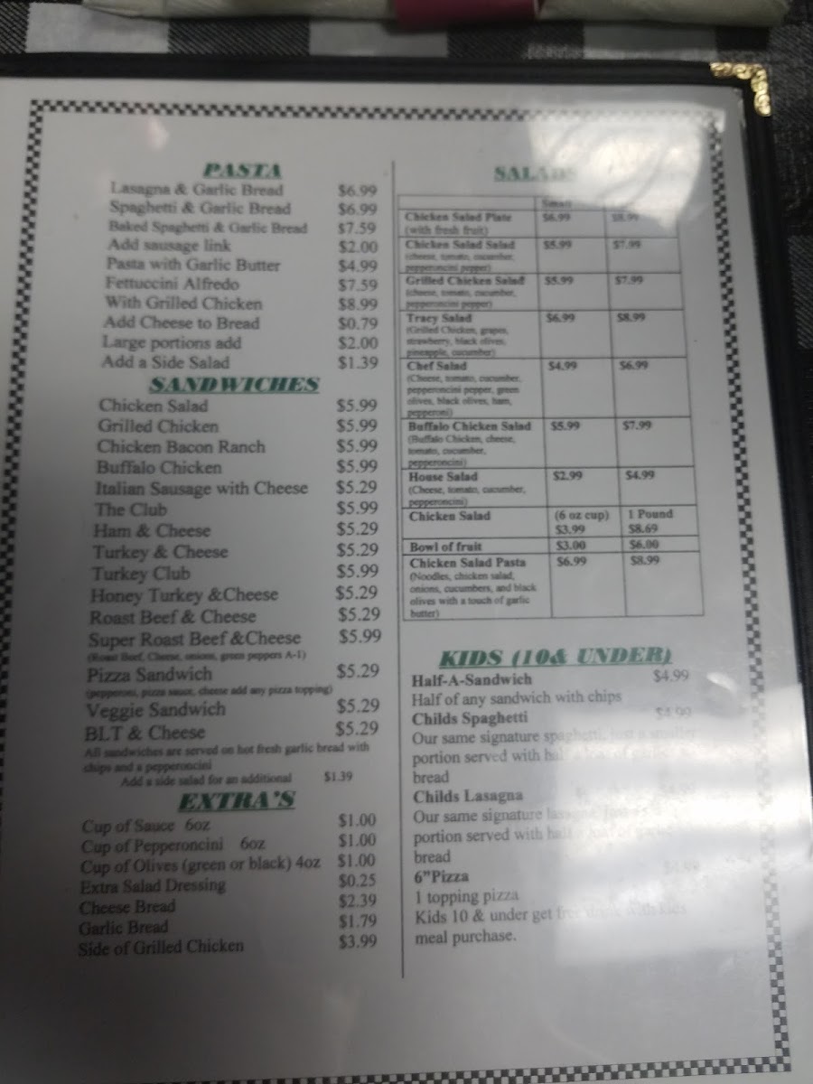 On the menu, you’ll find crowd-pleasers like a rich Lasagna with Extra Meat Sauce and pizzas topped with flavorful combinations — think Supreme, Chicken Alfredo, or inventive twists like Bacon Pepperoni and Banana Pepper Pizza. For lighter or shared moments, simple starters such as Cheese Sticks come with meat sauce, inviting easy, communal bites.